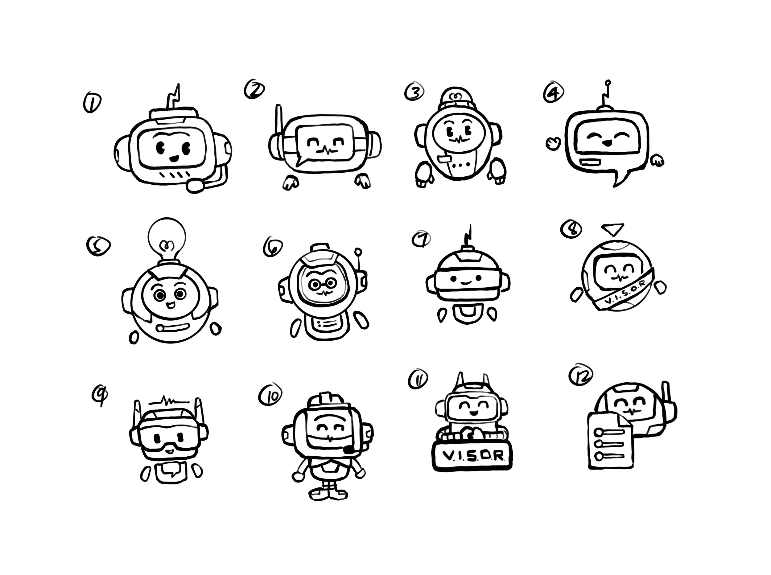 Image: VISOR concept sketches, different “faces” for the same job, showing it’s listening without stealing the scene.